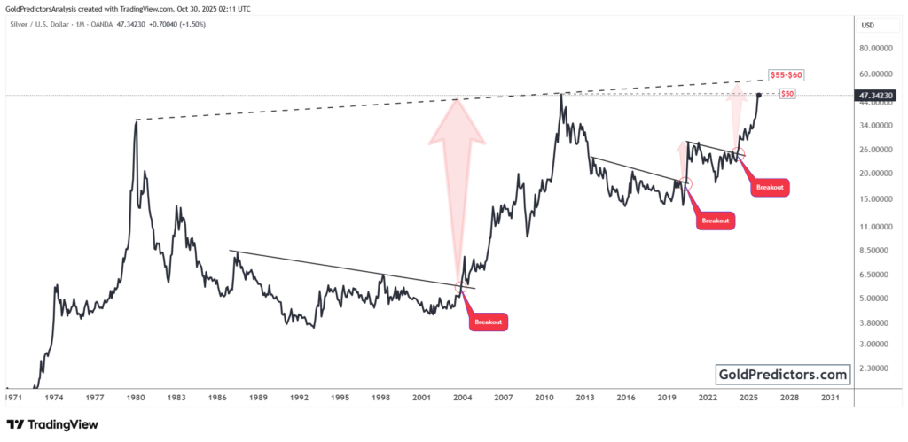 Silver Eyes Breakout Above $50 as Structural Patterns and Macro Momentum Align