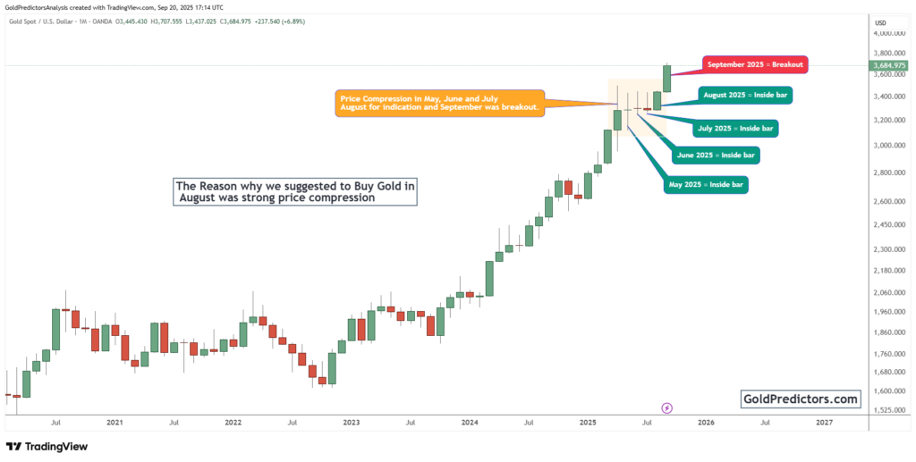 Gold breaks out after months of tight consolidation, confirming uptrend with strong volume and structural support from intermarket signals.