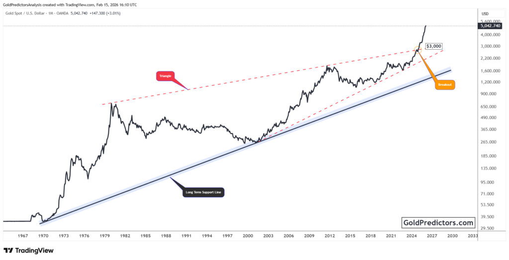Gold breaks decades-long resistance as dollar-to-gold ratio slips below support, signaling structural shift favoring higher prices.