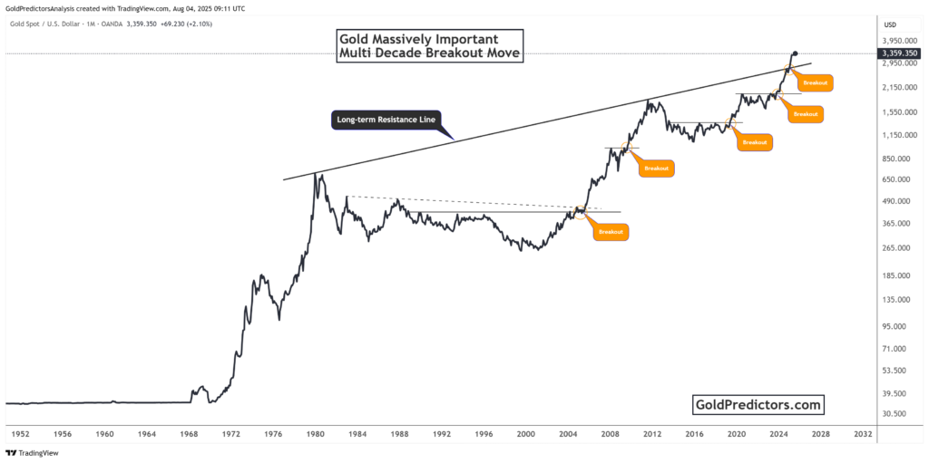 Gold’s breakout above decades-long resistance, combined with historic undervaluation, sets the stage for massive, sustained multi-year gains.