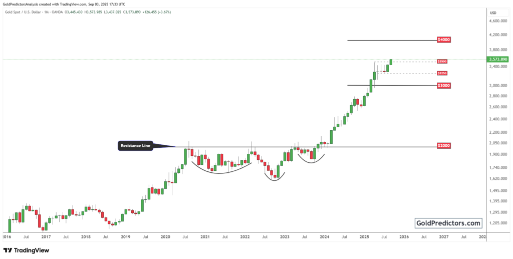 Gold Eyes $4,000 After Long-Term Breakout and Pattern Confirmation